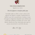 Muito bom dia. Hoje, dia 22 de agosto de 2025, somos convidados pelo Papa Leão XIV para um dia de jejum e oração pela paz e justiça no mundo, a que...